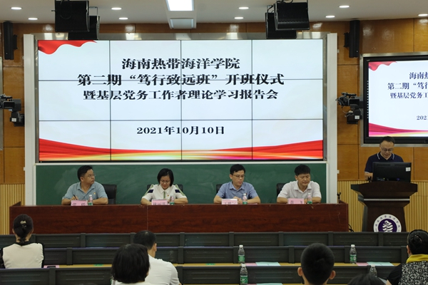 10月10日,海南热带海洋学院第二期“笃行致远班”开班仪式暨基层党务工作者理论学习报告会在三亚校区举行。学校相关部门和二级单位党组织负责人、党建组织员、党建联络人、党支部书记代表、学生党建联合会骨干以及第二期“笃行致远班”的学员等110余人参加了活动。活动由贾晓霖主持。
