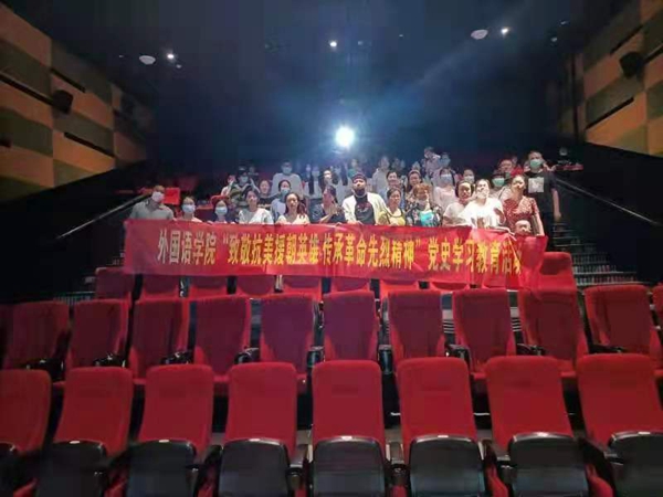 为缅怀抗美援朝英雄,深入开展党史学习教育、革命历史传统教育,传承红色基因、汲取历史滋养、坚守初心使命,外国语学院于10月15日组织学院党员干部和师生观看红色影片《长津湖》,开展以“致敬抗美援朝英雄 传承革命先烈精神”为主题的党史学习教育。