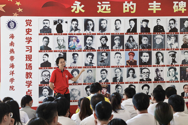 在艺术楼、人文楼大厅陈列的4个党史学习现场教学点——“党史英雄人物——方志敏”、“永远的丰碑”、“海南党史百名人物”、“中国共产党精神”,分别再现了中国共产党人的英雄事迹和崇高精神。来自马克思主义学院的张燕、魏茹冰、王贝、郭婷婷等4位老师用真实的史实、客观分析、动情的语言奉献了16堂精彩的党课,现场300余名入党发展对象沉浸其中、产生共鸣,教学现场掌声阵阵。