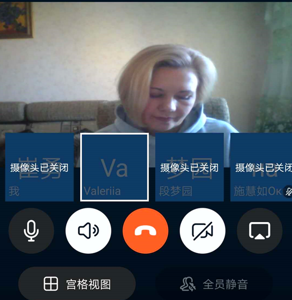 俄罗斯外教瓦列莉娅身在俄罗斯,与在三亚的乌克兰外教伊琳娜紧密配合,在王知孜老师的帮助下,解决直播主持的注册问题,与学生密切配合,演练上课情况,熟悉掌握软件,保证上课效果。3月2日早上8点,瓦列莉娅已准时开课。