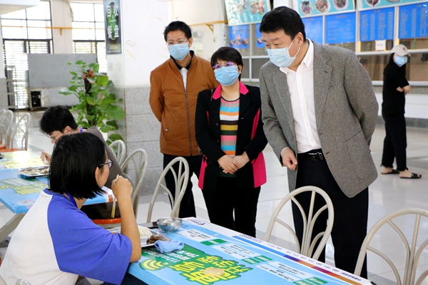 在食堂,陈锐一行与正在用餐的学生亲切交谈,了解他们的生活学习情况及需求,嘱咐他们注意饮食,加强锻炼,提高身体素质,做好自我防护。陈锐说,学校对留守学生用餐补贴50%的政策再延长至3月2日,从今天开始食堂还加强营养配餐,免费提供肉汤,希望同学们用餐开心。学校实行封闭管理这段时间,正是适宜静心读书、仰望星空的大好时光,希望同学们充分利用这段时间,好好思考人生,做好学习规划。