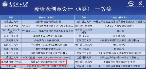 8月22日,来自全国60所学校、532支代表队的3000多名选手齐聚线上,共同参加“2020全国海洋智能装备创新大赛、第九届全国海洋航行器设计与制作大赛暨2020海洋装备创新赛”。经过为期两天的激烈角逐,最终获奖结果揭晓,我校队伍荣获新概念创意设计(A类)一等奖1个、二等奖2个,航行器设计与制作(B类)二等奖1个,技术难题求解(Q类)二等奖1个。其中钟胜奎和万武波老师指导的“集热式小型太阳能海水淡化装置”获得A类一等奖,徐元哲老师指导的“冰下穿梭机器人”获得A类二等奖,陈浩老师指导的三个项目“海洋观测平台无线充电装置”“无人机自动充气漂浮装置”和“多通道灵活高压共轨喷油器驱动系统”分别获得A类二等奖、B类二等奖和Q类二等奖。