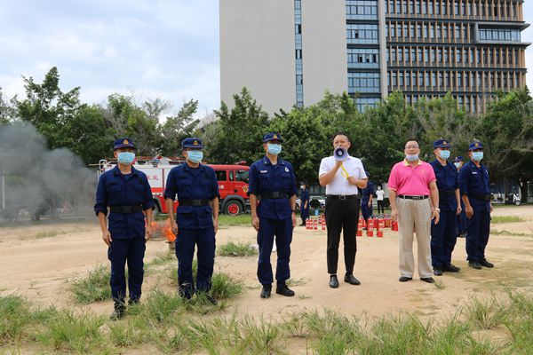 10月27日下午,应我校邀请,三亚市消防救援支队吉阳区大队津海消防站副站长赵新年一行到我校为2020级新生进行灭火器及室内消火栓使用方法培训,推动我校校园消防安全工作深入开展。我校副校长廖民生宣布演练开始。