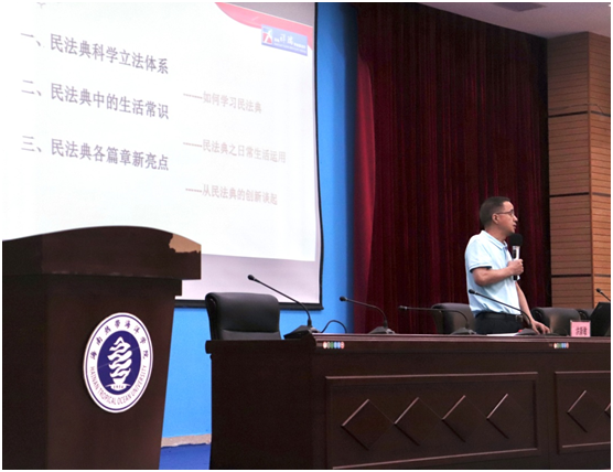 洪新敏强调,《民法典》涉及每个自然人、法人和非法人组织的切身利益,大到物权、债权、人格权,小到物业费、合同签定等。从出生到死亡,我们都能在《民法典》中找到法律依据。作为大学生应坚持学好、用好、宣传好《民法典》,尊重法律,敬畏规则,真正把法治精神内化于心、外化于行,努力破除各种阻碍,做崇法尊法、拥法护法的忠诚践行者和坚定捍卫者。