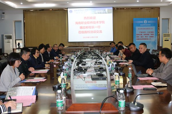 12月22日,海南软件职业技术学院校长魏应彬一行8人到我校就联办本科专业教育教学管理事宜进行洽谈交流。我校副校长杨兹举,党委委员、教务处处长穆军,以及相关部门、学院负责人参加交流。