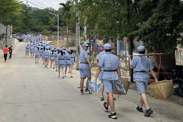 这是海南热带海洋学院第十一期入党发展对象培训班学员参加5公里“重走红军路”体验教学的场景。据了解,我校本期培训班共有270余名学员。为进一步落实党史学习教育要求,切实加强发展对象在入党前对中共党史的学习,学校党委党校开展了此次实践教学活动。活动开始前,学员们齐聚三亚红色娘子军演艺园接受了“红色娘子军历史展陈”和“解放海南岛70周年文史展”现场教学,重温琼崖革命历史,追忆革命先烈的英雄情怀,并了解了行军急救常识、徒步行军技巧等内容。