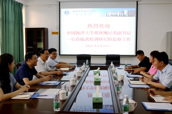 蒋秋飚肯定我校纪检监察工作,并表示具有重要的借鉴价值。他介绍了中国海洋大学纪检监察工作情况,并希望在今后的工作中能与海南热带海洋学院互通互联,在相互学习借鉴中促进纪检监察工作提升。