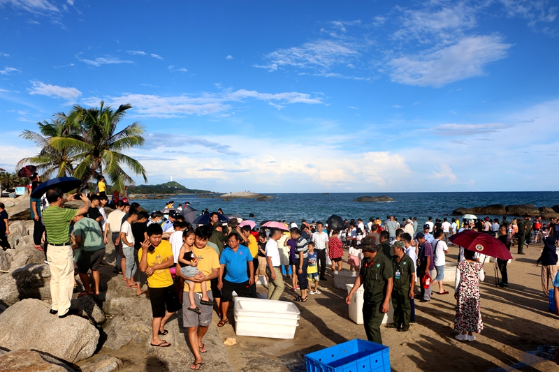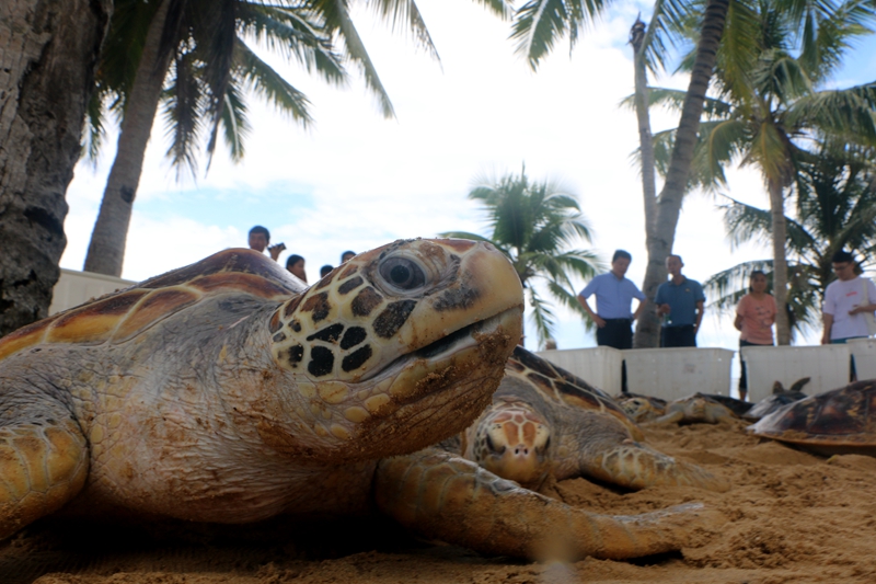 8月28日下午,海南省农业农村厅、文昌市人民政府主办的“保护海龟共建美好家园”活动在文昌市铜鼓岭淇水湾海滩举行,我校参与救护的68只海龟回归蔚蓝家园。省农业农村厅厅长许云、文昌市代理市长刘冲、我校校长陈锐等出席活动。