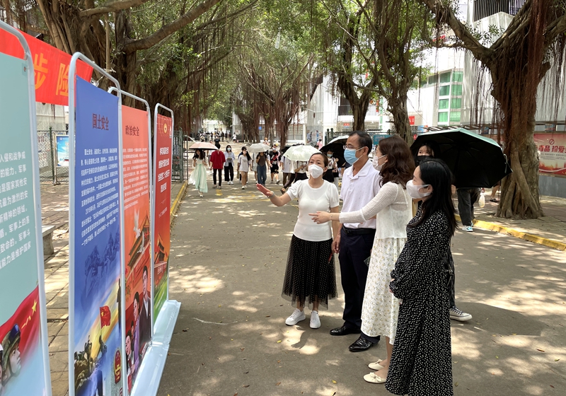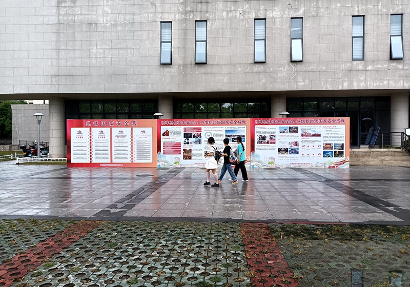 学校党委宣传部商请三亚市国安局提供2022年全民国家安全教育日主题展板内容,在学校图书馆路口制作投放了“总体国家安全观五大要素五对关系”“树牢总体国家安全观 感悟新时代国家安全成就”等3块大型展板。商学院在学校第一食堂门口制作投放了政治安全、国土安全等16块展板,立体展现了习近平关于总体国家安全观的丰富内涵。为师生们分享了习近平关于总体国家安全观相关理论知识,吸引了广大在校师生在宣传展板前驻足阅读、认真进行讨论,将习近平关于总体国家安全观重要论述根植于心。4月15日“全民国家安全教育日”当天,党委宣传部在学校官网、公众号上推送了《国家安全 共同守护》倡议书,呼吁广大师生守护国家安全,人人有份有责。此外,还安排学生记者采写各二级单位举办的安全教育活动,及时在校园网上发布系列报道,迅速在学校里形成了浓厚的宣传教育氛围,取得了很好的效果。