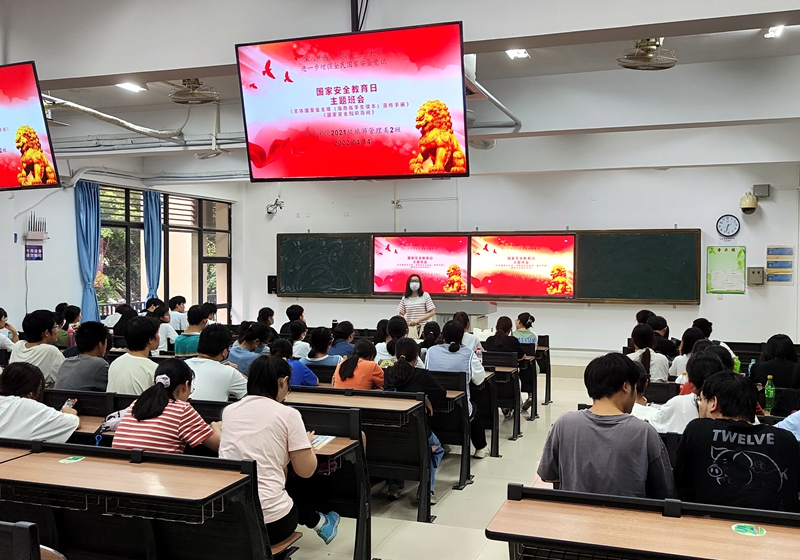 全校各二级学院以主题班会的形式,采取“线下为主 线上为辅”的方式进行讨论交流,组织师生就国家安全应知应会召开一次主题班会。创意设计学院组织各个班级集中观看了人民网短视频“我们都是国家安全的守护人”、收集整理了总体国家安全观应知应会知识问答、学习《总体国家安全观(海南省学生读本)宣传手册》、探讨大学生泄露国家安全机密的反面案例,引导同学树立强国一代的维护国家安全的责任使命。民族学院通过召开主题班会、观看国家安全主题微电影《密战》《猎虎》和学习交流会等方式,积极组织广大学生学习相关法律法规知识,引导广大学生进一步增强国家安全意识和保密意识,提高风险防范意识和防范能力。国际学院辅导员、班主任开展国家安全教育主题班会,通过播放国家安全教育相关视频和对国家安全尤其是生物安全知识的讲解,并向学生们讲解在学校疫情防控条件下要如何调整心态,如何配合学校的疫情防控措施,通过交流和学习增强保护国家安全的意识,树立共同战胜疫情的信心。
