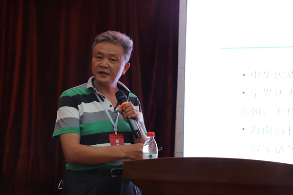 在主旨报告环节,我校民族学院院长、“铸牢中华民族共同体意识研究中心”主任张朔人教授从海南移民基本情况、民族交融具体表现、民族交融杰出成就等方面纵论“海南历史上的民族交融历史研究”。西南大学张学敏、海南师范大学王献军、广州大学王利兵、中央民族大学彭勇、厦门大学张先清、广西师范大学张积家、广东技术师范大学符昌忠、中南民族大学哈正利等10位专家学者,分别做了线上、线下主旨报告。