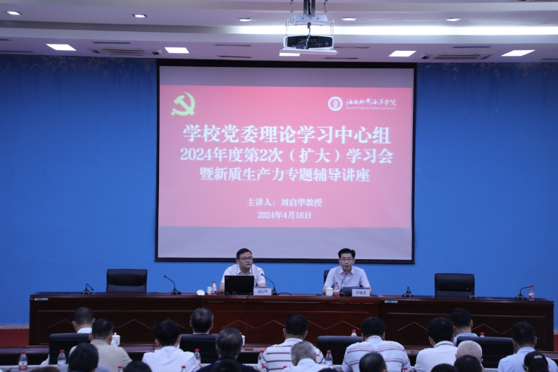 4月16日下午,我校党委理论学习中心组在四栋报告厅召开2024年度第2次(扩大)学习会,围绕新质生产力开展专题学习。海南大学教授、博士生导师刘启华受邀讲座。校党委副书记符成彦主持会议,学校党政领导班子成员与会聆听。