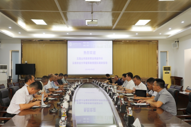 5月8日下午,五指山市委常委、副市长黄业伟,普洱茶学教育部重点实验室主任、云南农业大学原校长、云南省高原特色农业产业研究院原院长盛军带队来我校调研,我校党委书记陈锐,党委常委、副校长杨学前参加调研座谈。