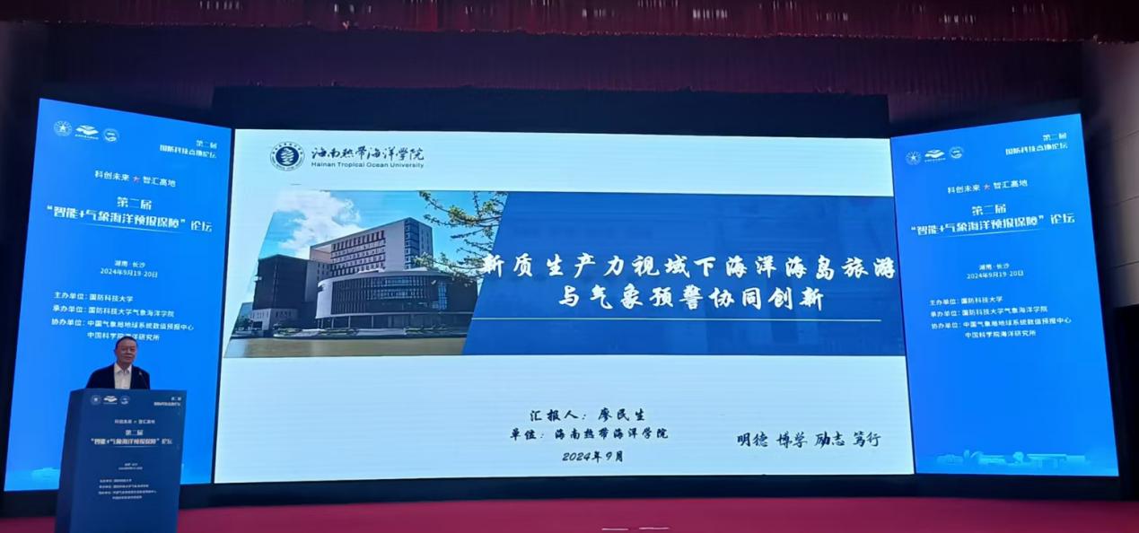 廖民生以“新质生产力视域下海洋海岛旅游与气象预警协同创新”为主旨作主题发言。发言聚焦海洋气象预测对旅游的影响和旅游业对海洋气象预测的需求,建议加强海洋气象预警系统的建设,以保障海洋旅游安全和提升旅游体验。廖民生向与会人员介绍了我校的办学情况以及我校作为全国唯一一所热带海洋类高校在海洋科学、生态、旅游等领域取得的成就。此外,还介绍了海岛旅游资源数据挖掘与监测预警技术文化和旅游部重点实验室的基本情况、研究方向、主要任务及研究成果等内容。廖民生指出,海洋与大气相互作用下形成的海洋气象景观对游客具有独特的吸引力。然而,极端天气事件易对沿海地区安全构成威胁,因此需要加强气象预警系统的建设。他强调,旅游行业对海洋气象预测信息有高度需求。行业要做好提升旅游气象服务水平、推动气候适应性旅游标准制定以及加强国际合作的应对措施。