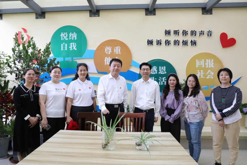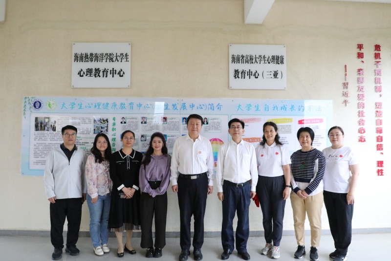 陈锐一行还参观了大学生心理健康教育中心近期建设完成的积极心理体验中心、团体辅导工作室、学生一站式社区的“心语小屋”,并与专职心理教师一起合影。