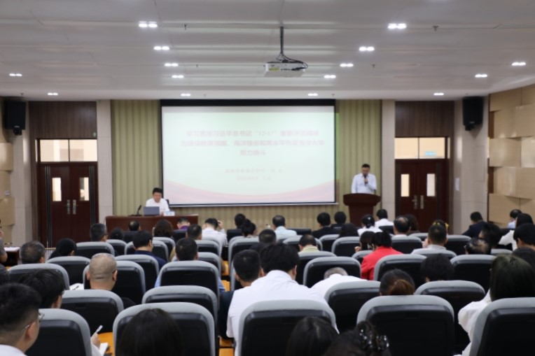 为深入学习习近平总书记重要讲话精神,进一步凝聚广大师生共识,加快推动学校高质量发展。4月1日下午,学校党委书记陈锐为师生讲授题为《学习贯彻习近平总书记“12•17”重要讲话精神,为建设教育强国、海洋强省和高水平热带海洋大学努力奋斗》的专题党课。学校教育工会主席(副厅级)吴清江现场聆听。党委常委、宣传统战部部长万刚主持党课。