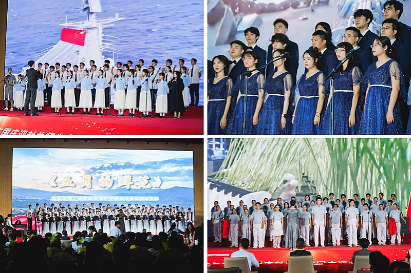 本次比赛以“开放新声唱华诞,研学筑梦启新篇”为主题,共16 支参赛队伍同台竞技,以多样曲目传递家国情怀。《在希望的田野上》《我爱你中国》《我和我的祖国》《祖国不会忘记》《五月的鲜花》《军港之夜》等表演,或激昂高亢、或温情脉脉,每一首曲目都凝聚着师生对祖国的祝福,展现广大师生矢志科技创新、建功自贸港封关运作的豪情和风采。