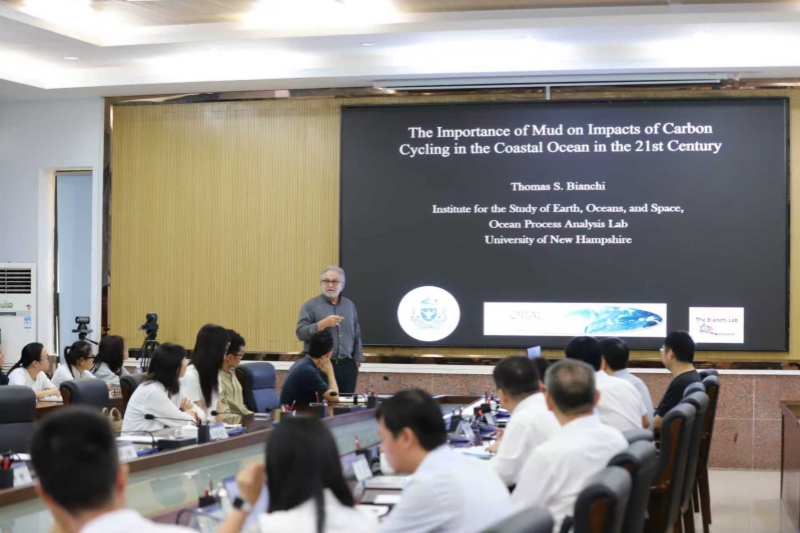 Thomas S.Bianchi以The Importance Of Mud On Impact Of Carbon Cycling In The Coastal Ocean In The 21st Century(《21世纪近岸海洋中淤泥对碳循环影响的重要性》)为题,为师生作学术报告。该报告围绕海岸带碳循环展开,指出海岸带和浅海陆架虽仅占全球海洋面积的16%,却储存超过90%的海洋碳。红树林、沼泽、海草床等蓝碳生态环境是碳埋藏热点,而泥质是海岸带高效储碳的关键——其能结合有机质、防止其快速分解,且泥的氧化还原状态、微生物活动及大型底栖动物扰动均会影响碳埋藏量。报告提到,全球变暖引发生物群落调整(如红树林向更高纬度扩张、取代沼泽)、物种适应或灭绝、底栖生物分布变化等,进而改变海岸带储碳功能,可现有海洋模型未考虑此点,亟需生物多样性与碳循环领域研究者协作优化碳循环模型。海岸带碳循环过程受到人类活动的深刻影响,需利用跨学科的手段进行整体研究。