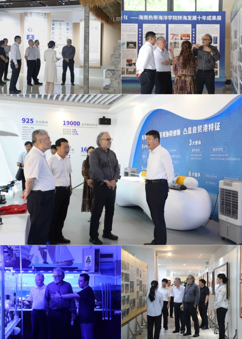 讲座结束后,于志刚与Thomas S.Bianchi一行参观了校史展与《山海扎根担使命 向海图强启新程》转海发展十年成果展,详细了解学校的发展历程及转海发展取得的成就。随后,前往学校珊瑚馆参观模拟珊瑚礁海洋生态系统,听取学校珊瑚生态修复研究团队在海洋生态修复方面取得的成就及工作进展情况介绍,并参观了南海文化博物馆黎族传统文化综合展。