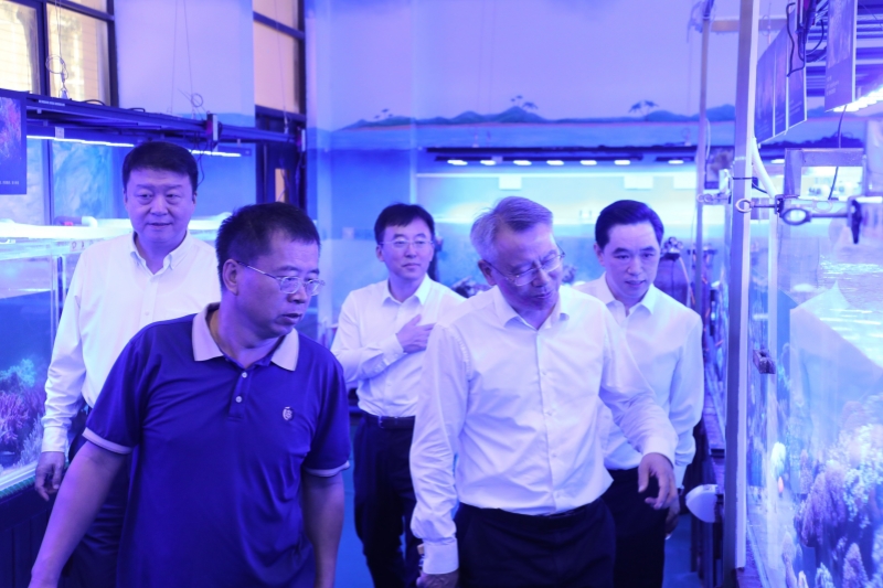 随后,刘平治参观了学校国家大学科技园转海发展十年成果展,详细了解学校发展历程和转型成就,并前往珊瑚馆察看模拟珊瑚礁生态系统,听取珊瑚生态修复研究团队的工作汇报。
