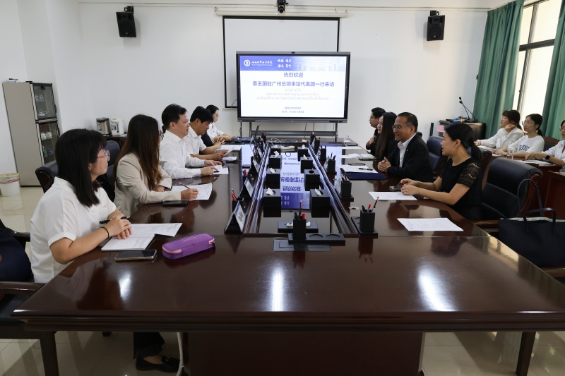 12月5日上午,泰王国驻广州总领事馆总领事沈勇俊一行访问我校,双方围绕中泰教育合作、人文交流等多领域进行了深入探讨。校党委常委、副校长杨学前参加座谈交流。