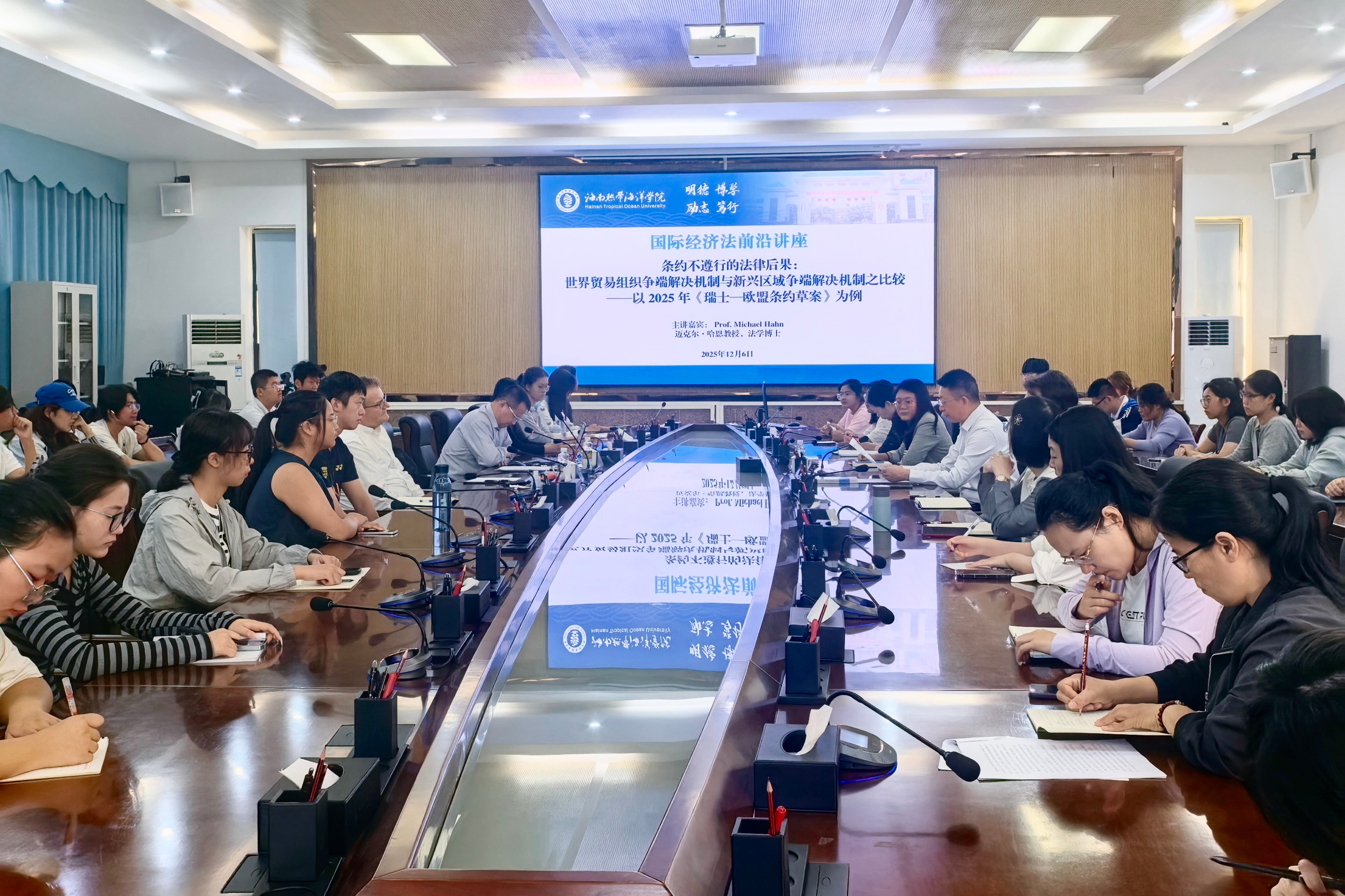 12月6日上午,瑞士伯尔尼大学Michael Hahn教授应邀在我校行政楼217会议室作题为《条约不遵行的法律后果:世界贸易组织争端解决机制与新兴区域争端解决机制之比较——以2025年〈瑞士—欧盟条约草案〉为例》的学术讲座。校党委常委、副校长穆军主持报告。