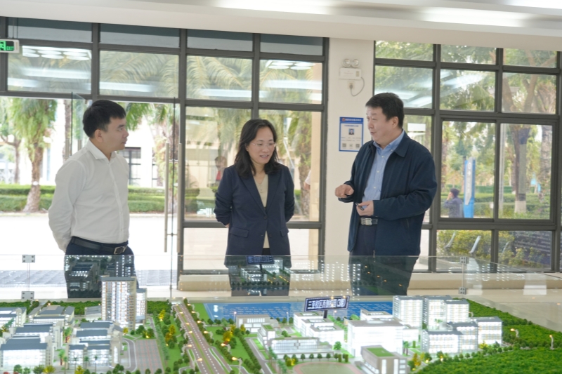 座谈前,周春华一行参观校园规划沙盘并听取学校发展规划情况介绍。