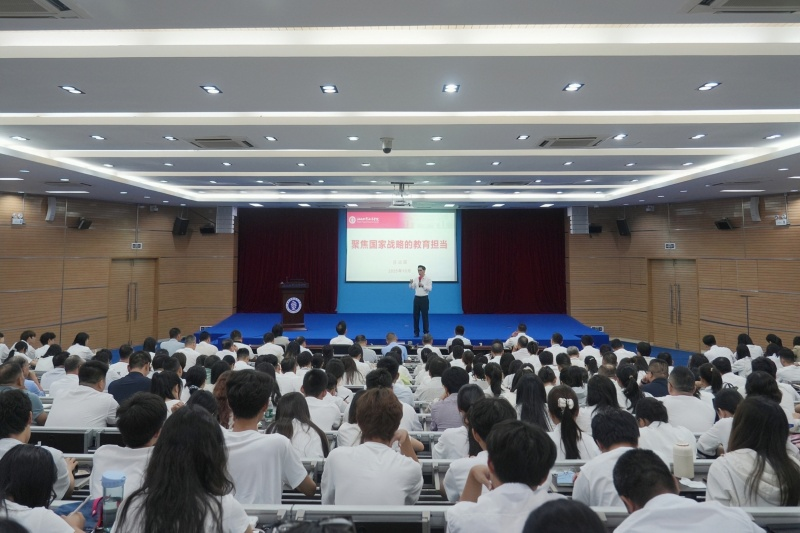 2025年10月28日,校长吕治国从“心中的国”“身边的海”“脚下的家”“肩上的担”四个维度为师生讲授“聚焦国家战略的教育担当”的专题思政课,引领广大师生为强国建设、民族复兴和海南自由贸易港的美好明天贡献智慧与力量。