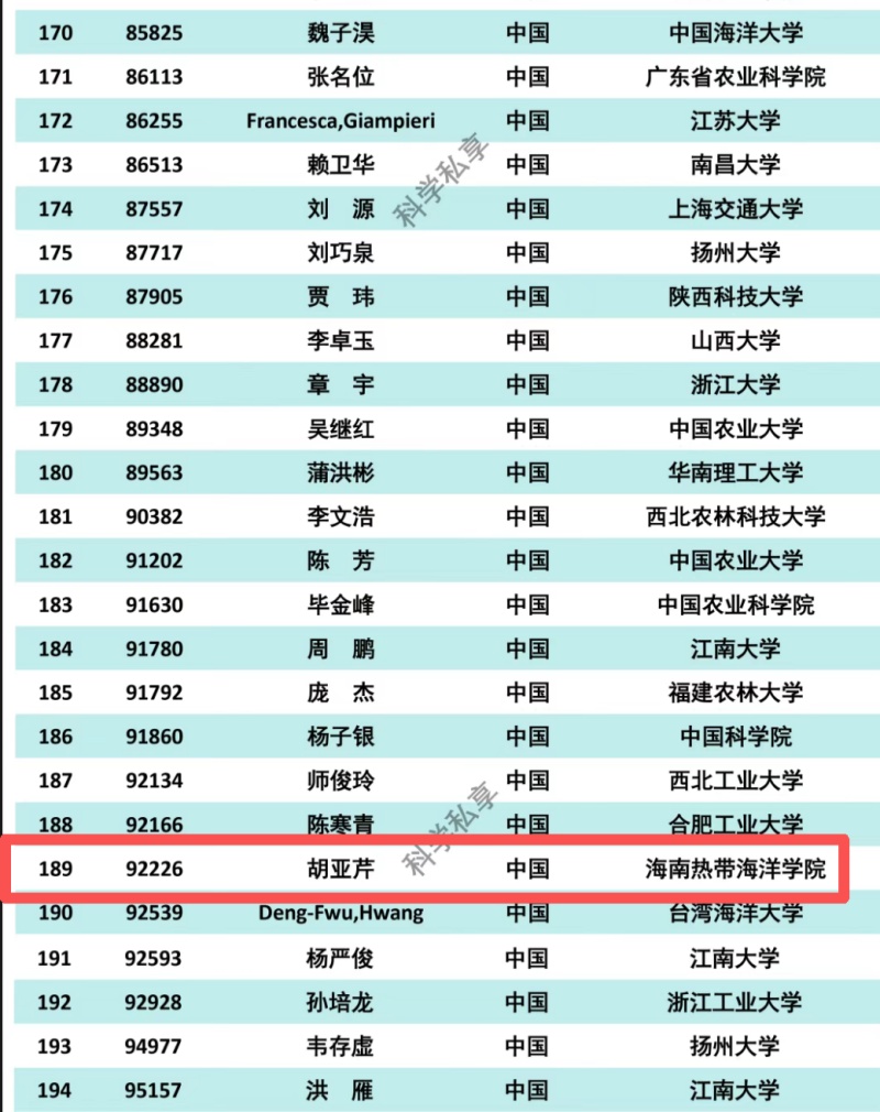 胡亚芹此次入选全球榜单,是学校扎实推进海洋食品特色学科建设和加快一流海洋大学建设的突出成果,也是我校持续实施人才强校战略、稳步提升国际学术影响力的有力彰显。未来,学校将进一步强化海洋食品学科特色,持续优化科研平台建设,鼓励科技创新与成果转化,力争在国家级重大项目、高水平学术产出及创新平台建设等方面取得更大突破,为服务海洋强国战略、海南自由贸易港建设以及国家蓝色经济发展贡献积极力量。