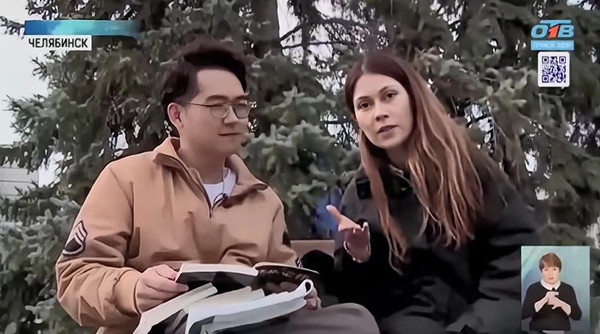 近日,由于中俄关系不断深化,俄罗斯人对中国文化产生浓厚兴趣,学习汉语的人数成倍增加。俄罗斯车里雅宾斯克州立OTV电视台采访了我校俄语专业2021届毕业生袭圣仁。该同学目前正在俄罗斯南乌拉尔国立大学攻读硕士学位,他在采访中介绍了汉语的特点和学习汉语的方法,努力推动中华文化走出去,提升国家文化影响力。