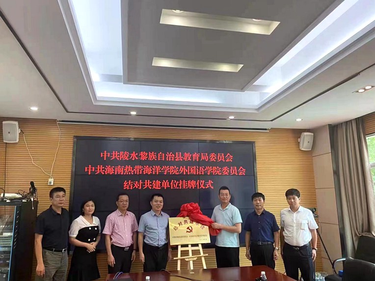 近日,我校外国语学院党委与陵水黎族自治县教育局党委在陵水县教育局会议室举行结对共建签约揭牌仪式。外国语学院党委副书记李足,副院长张国臣,陵水县教育局党委书记、局长王祚锐,党委副书记、副局长陈文敬出席仪式。