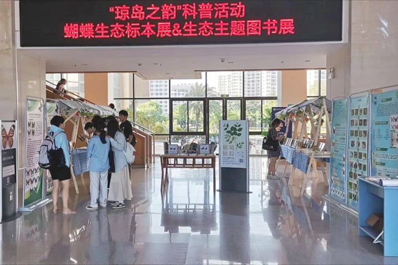 为展示琼岛自然生态之美,充分利用资源开阔大学生视野,提升大学生的审美情趣,9月3日,海南热带海洋学院图书馆联合蝶研社在图书馆一楼大厅举办了蝴蝶标本展及热带生物图书主题展,并现场开展了互动问答知识科普活动。活动得到了海南省社科联、三亚市社科联的大力支持,并受到了广大师生的喜爱,取得了良好的活动效果。