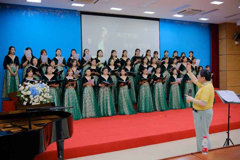 现场座无虚席,曹丁教授首先给大家介绍了合唱指挥国内外前沿动态,普及了一些关于合唱指挥专业的理论知识,并对学院女声合唱团进行了悉心指导,提出了宝贵的意见和建议。讲座过程精彩纷呈,掌声不断。