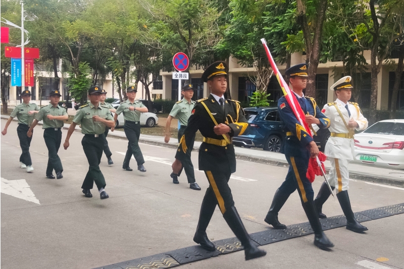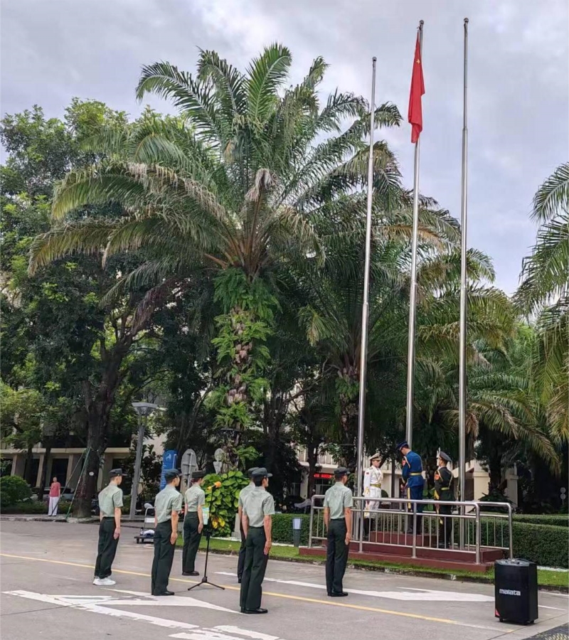 10月30日上午7点,海洋科学技术学院与民族学院联合举行升国旗仪式。海洋科学学院党总支书记刘家宝及两院师生代表约400人参加了活动。