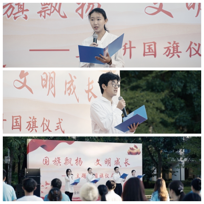 活动接近尾声,人文社会科学学院学生代表钟天放、赵玟、施艳秋、彭馨阅用朗诵作品《锦绣》表达对祖国的热爱,号召同学们不负时代、不负韶华,为祖国的繁荣富强贡献自己的力量。