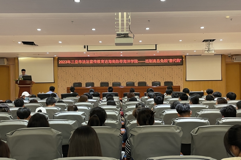 11月21日下午,我校学生工作部(处)联合三亚市司法局,邀请三亚海关、三亚海关缉私分局在图书馆学术报告厅举办抵制离岛免税“套代购”法治教育专题讲座。