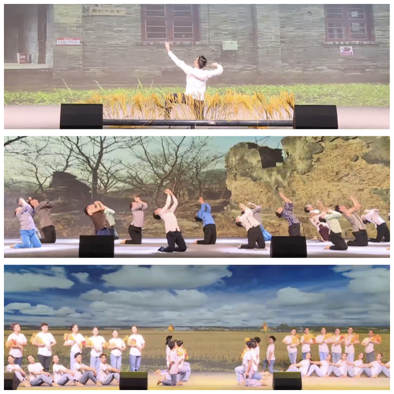 《稻香》讴歌了袁隆平先生献身科学、顽强拼搏、勇于创新的高尚品德,同时警醒当下人们敬畏自然,勿忘灾难,珍惜粮食,珍爱和平。该作品的创作与演出是我校舞蹈编导专业在探索思政教育与专业教育深度融合方面的突出成绩,也是舞蹈编导专业积极主动践行美育教育、浸润校园的典型案例。