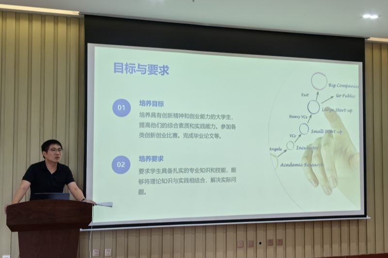 校团委相关负责人解读了《海南省教育厅关于做好2023年国家级和省级大学生创新创业训练计划立项和结题验收工作的通知》,详细介绍了项目类别、立项条件、项目孵化支持、项目结题等相关事宜,并为同学们引申解读了创新创业的意义、创新人才能力和素质要求、竞赛对创新人才培养的作用。他引导在座学生团队,要读懂赛题要求,结合自身专业发挥特长,提升项目质量,加强项目成果的推广和应用,做出有完整体系、有社会意义、有发展前景的项目。