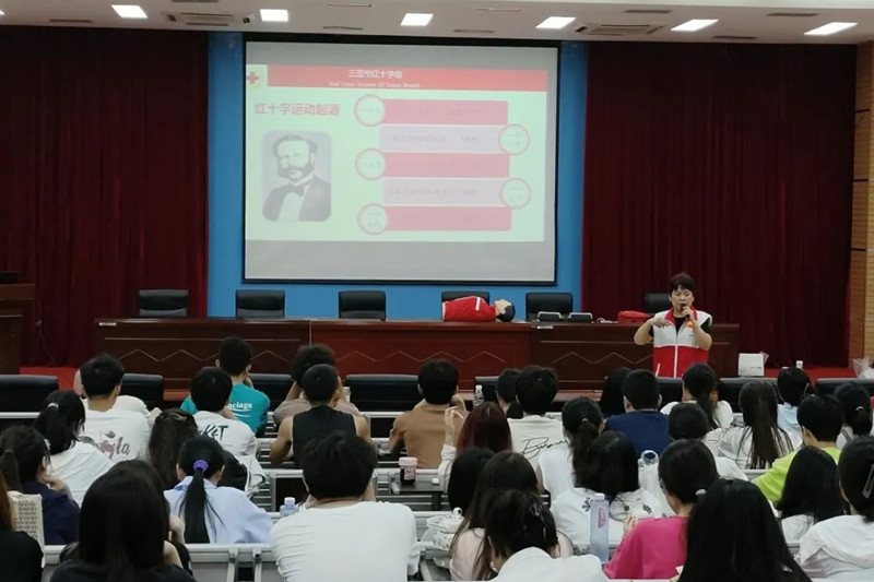 本次活动由三亚市红十字会专业人员进行指导教学。培训现场,采取了“理论+实操+测试考核”的方式,运用专业的理论知识和典型的实际案例,重点讲解如何抓住心肺复苏黄金四分钟、心肺复苏的操作步骤和注意事项以及AED操作流程等知识,并借助人体模型重点示范胸外按压的位置、手法、频率和深度,同时通过真人演示如何运用“海姆立克急救法”帮助患者排除气道异物,课程结束后进行了应急救护知识测试考试。