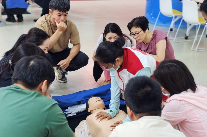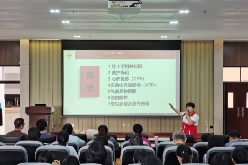 三亚市红十字会工作人员结合多年的工作经验,向学员们介绍了红十字运动的历史与发展,以及红十字会在人道救援、卫生保健等领域的重要作用;详细阐述了救护的基本概念,并对心肺复苏(CPR)、创伤救护等理论知识进行了系统讲解。老师们运用人体模型和自动体外除颤仪(AED),就如何进行心肺复苏(CPR)和创伤救护等进行现场讲解和示范,指导学员们进行操作练习,确保每位学员都能掌握正确的操作技巧。