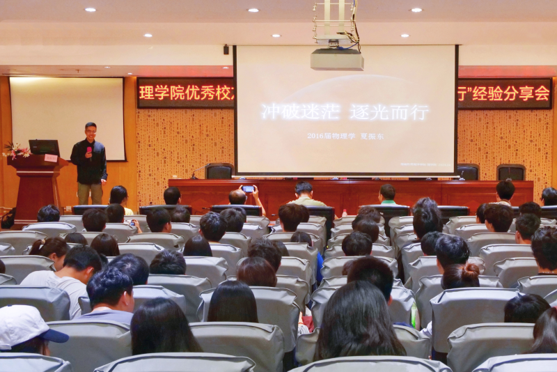 按照学校建校70周年校庆活动安排,4月26日下午,理学院邀请2016届优秀校友夏振东回校为在校生作主题为“冲破迷茫、逐光而行”的经验分享会。夏振东目前任景德镇市第十三中学物理教师、景德镇市初中物理教研员;互联网百万粉丝科普达人,全国义务教育物理教材审读专家,中央电视台特邀嘉宾讲师,中国90后十大影响力人物,省中小学“教师国家培养计划”培训专家,市级模范教师,市级“青年五四奖章”获得者。分享会由学院学工办主任纪树威主持,学院党政领导班子、专业负责人、辅导员、班主任及物理学专业全体学生、其他专业部分代表200余人参加。
