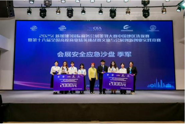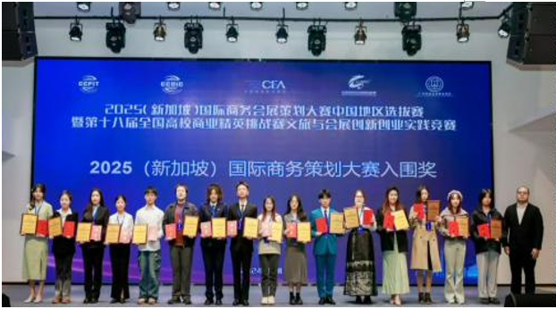 近日,在2025(新加坡)国际商务会展策划大赛中国地区选拔赛暨第十八届全国高校商业精英挑战赛文旅与会展创新创业实践竞赛总决赛上,我校旅游学院会展经济与管理专业学生获得会展安全应急沙盘赛总决赛季军,并取得2025年(新加坡)国际商务会展策划大赛入围资格,以优异的成绩向学校70周年校庆献礼。