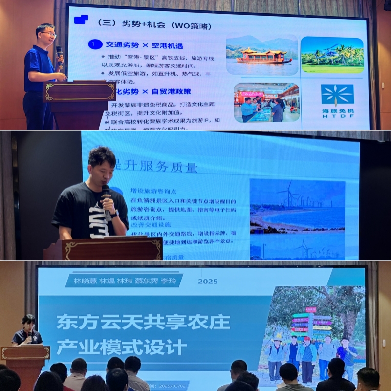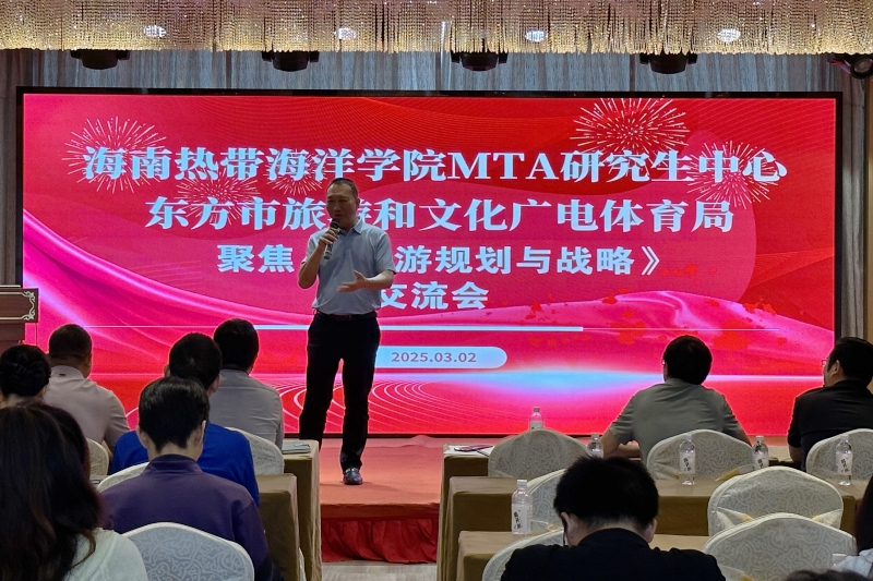 次日,海南热带海洋学院MTA研究生中心与东方市旅游和文化广电体育局联合举办了《旅游规划与战略》专题交流会。东方市旅游和文化广电体育局局长符质辉出席会议,认真听取学生小组汇报,并对学生们的专业知识、学术见解及调研成果给予高度评价。符质辉表示,此次调研活动为东方市旅游业发展提供了宝贵的理论支撑与实践参考,同时感谢海南热带海洋学院师生为东方市旅游业高质量发展贡献智慧与力量。