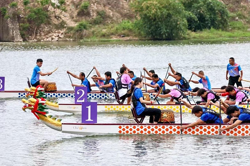 比赛时,热海大创新院龙舟队队员奋力挥桨整齐划一。河面上水花飞溅,龙舟如游龙般穿梭,展现出速度与力量的完美结合。经过两轮轮次赛和总决赛,热海大创新院龙舟队获得了男子组第一名的好成绩。