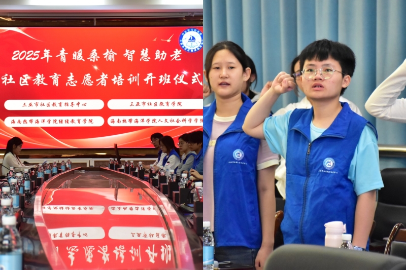 “以‘尊老、敬老、感恩奉献’的初心助力老年群体共享智慧生活”,全体志愿者庄严宣誓。近期,海南热带海洋学院继续教育学院联合人文社会科学学院、三亚市社区教育指导中心共同开展了2025年“青暖桑榆”智慧助老社区教育志愿者培训。该培训旨在通过青年志愿者力量帮助老年人融入数字生活,是我校践行社会责任、服务地方发展的重要实践。