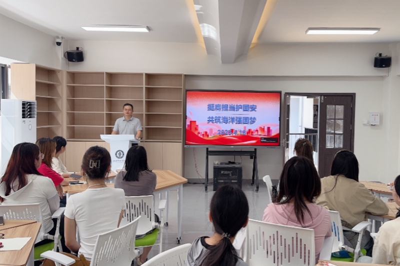 李燕青聚焦海洋领土安全与国家主权的话题,运用翔实的数据和生动的案例,就海洋安全在国家安全中的地位、当前海洋安全形势以及我国海洋战略的总体演进作了重点阐释。他指出,历史经验告诉我们:海安才能国安,海不安则国必难安,同学们要铸牢远大的理想信念,发扬“敢闯敢试、敢为人先、埋头苦干”的特区精神,为建设海洋强国、海洋强省贡献青春力量。