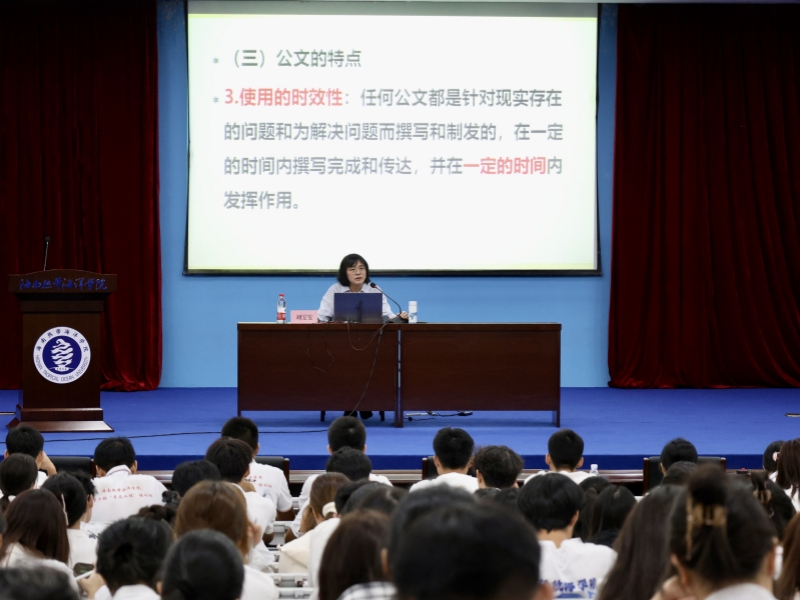 在专题培训环节,商学院党委副书记刘雯雯以《践行公文格式“规范”,筑牢未来职业素养》为题进行授课。她系统讲解了公文写作的基本规范与常见误区,强调格式规范不仅是形式要求,更是职业素养的重要体现。课程内容详实、案例生动,帮助学员在掌握实操要领的同时,深刻理解规范意识在个人职业发展中的基础性作用。