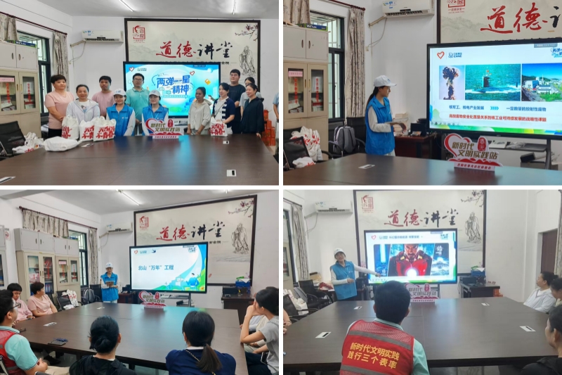在三亚市春光社区居民委员会和哈尔滨市友协第二小学校,宣讲团围绕北山“万年级”工程和“华龙一号”开展特色宣讲,采取“故事分享+科学实验”的方式,推动“两弹一星”精神融入社区生活与校园教育。