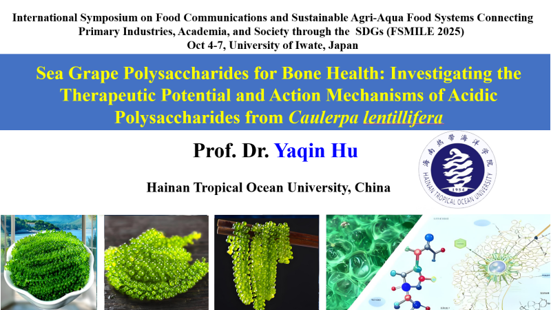 10月4日至7日,海南热带海洋学院食品科学与工程学院胡亚芹教授应邀参加在日本岩手大学举办的“食品通讯与可持续农渔食物系统国际研讨会(FSMILE 2025)”。该会议旨在通过可持续发展目标(SDGs)连接初级产业、学术界与社会,汇聚了来自全球食品科学与农业水产领域的专家学者。