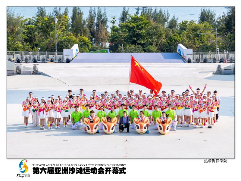 4月22日晚,2026年第六届亚洲沙滩运动会开幕式在三亚亚沙公园指环剧场举行。我校艺术学院82名学生组成的群众演员队伍,圆满完成各项演出任务,展现了饱满的精神状态与专业的表演水准。